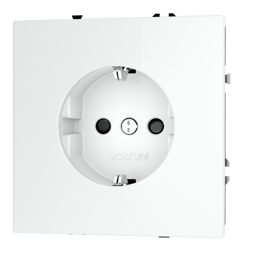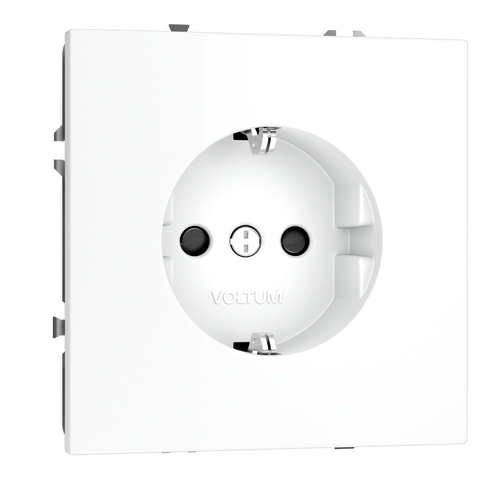 Розетка встраиваемая VOLTUM S70 с заземлением и защитными шторками, 16А, (белый матовый)