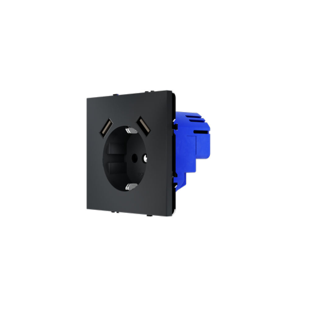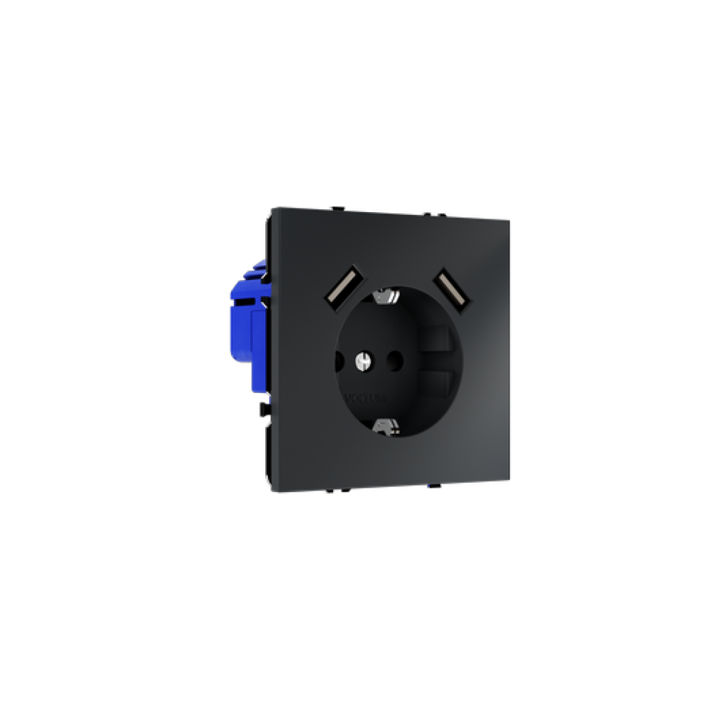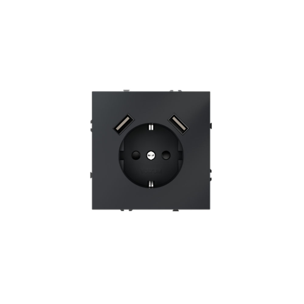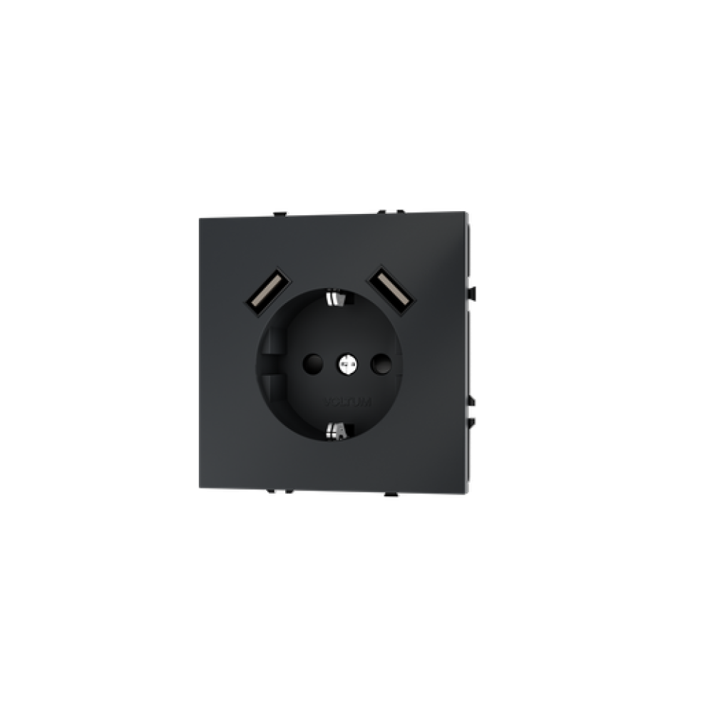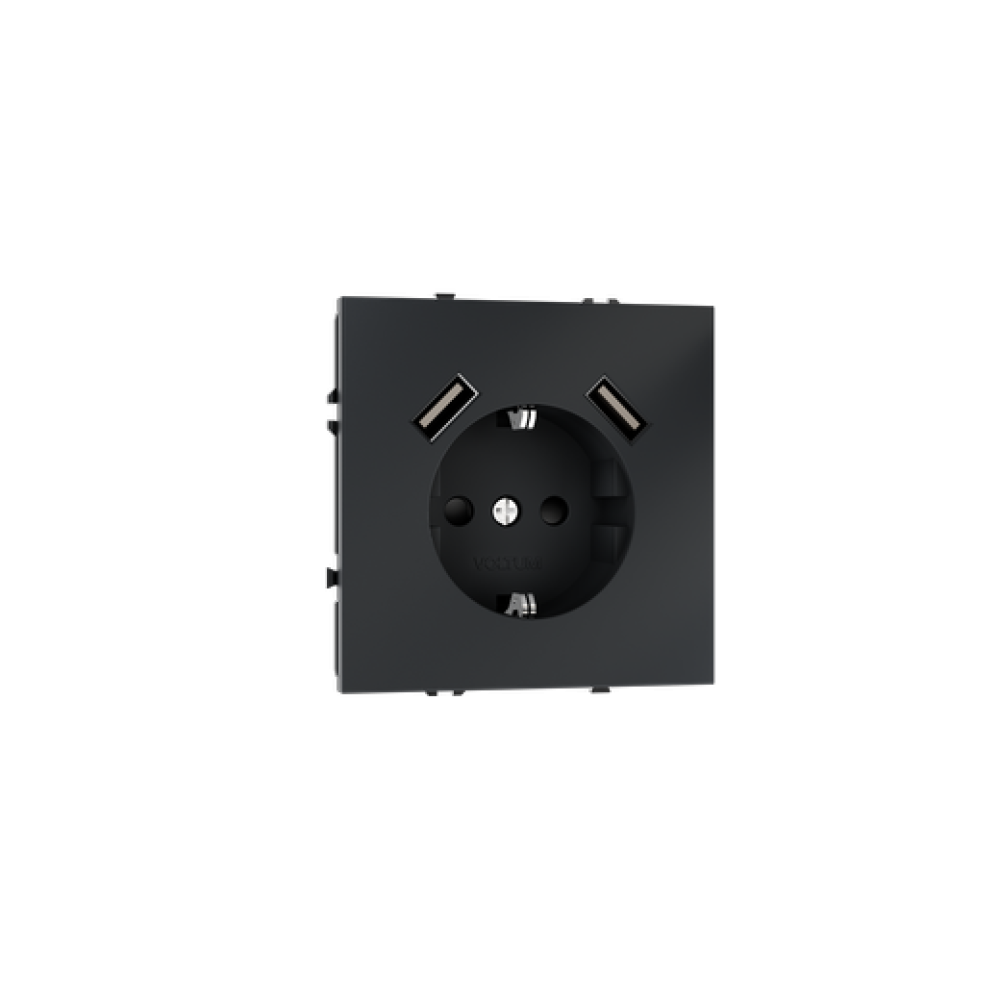 Розетка встраиваемая VOLTUM S70 с заземлением и защитными шторками, 16А, с USB, A+A, (графит)