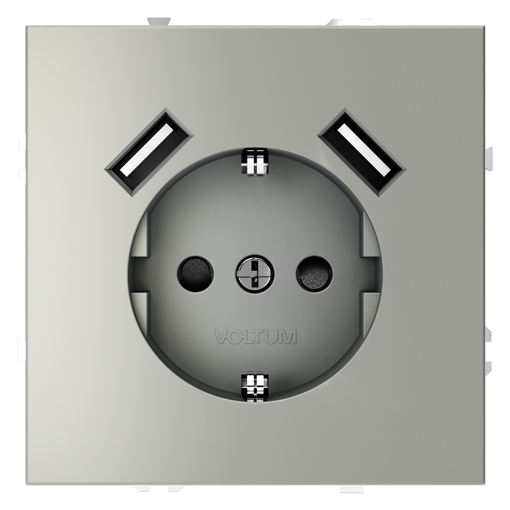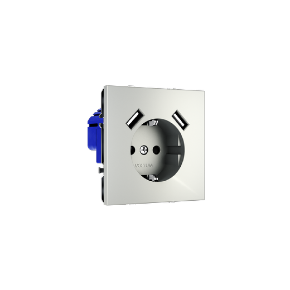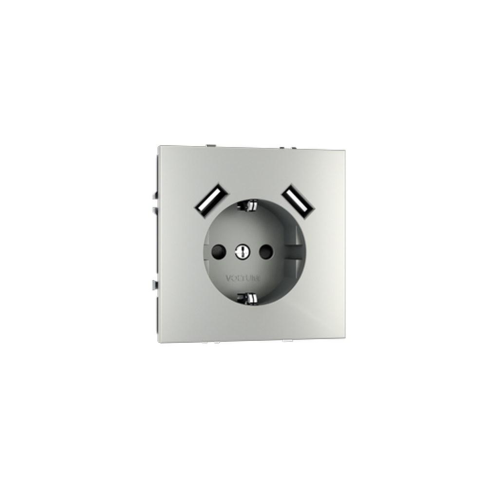 Розетка встраиваемая VOLTUM S70 с заземлением и защитными шторками, 16А, с USB, A+A, (сталь)