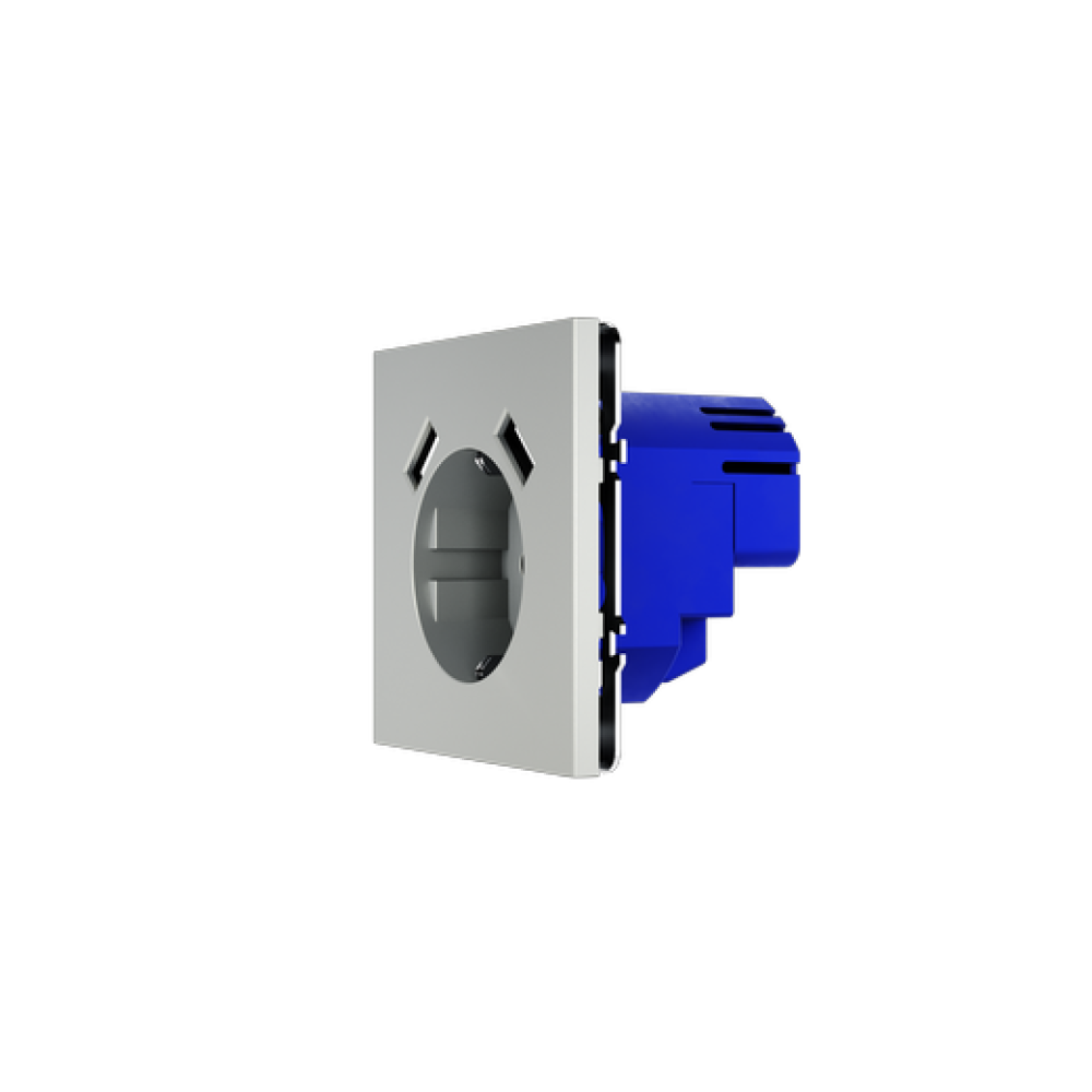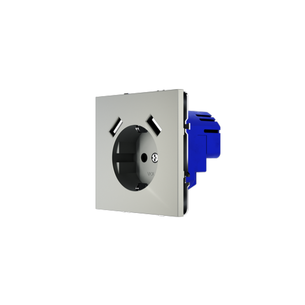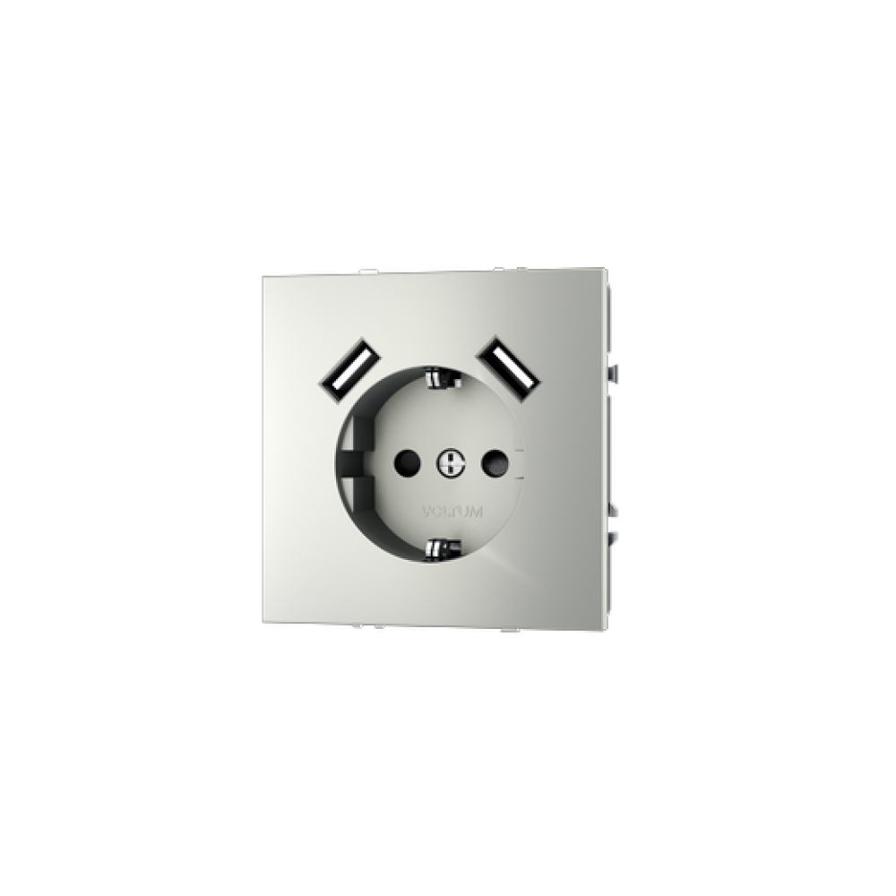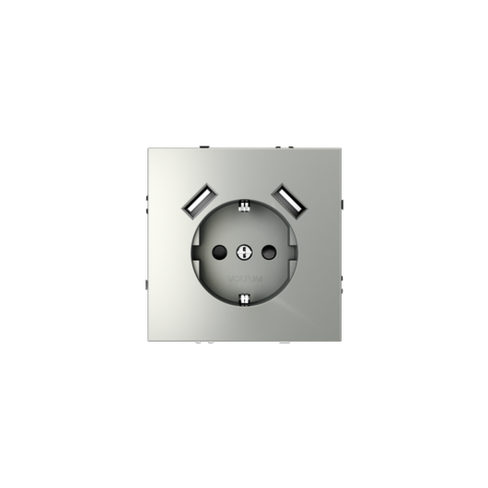 Розетка встраиваемая VOLTUM S70 с заземлением и защитными шторками, 16А, с USB, A+A, (сталь)