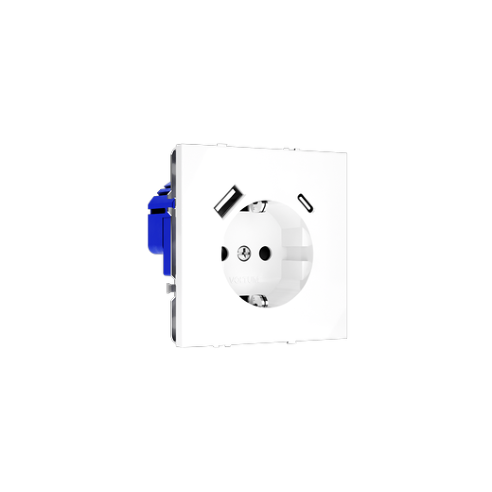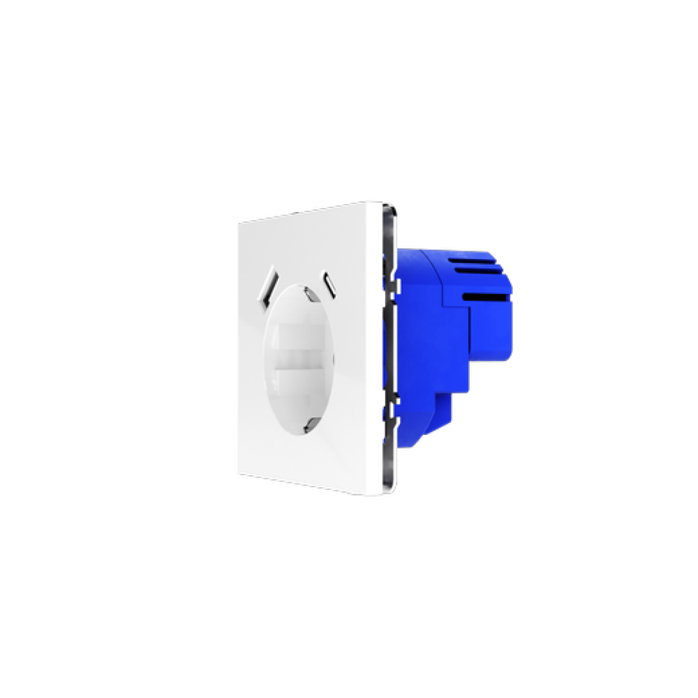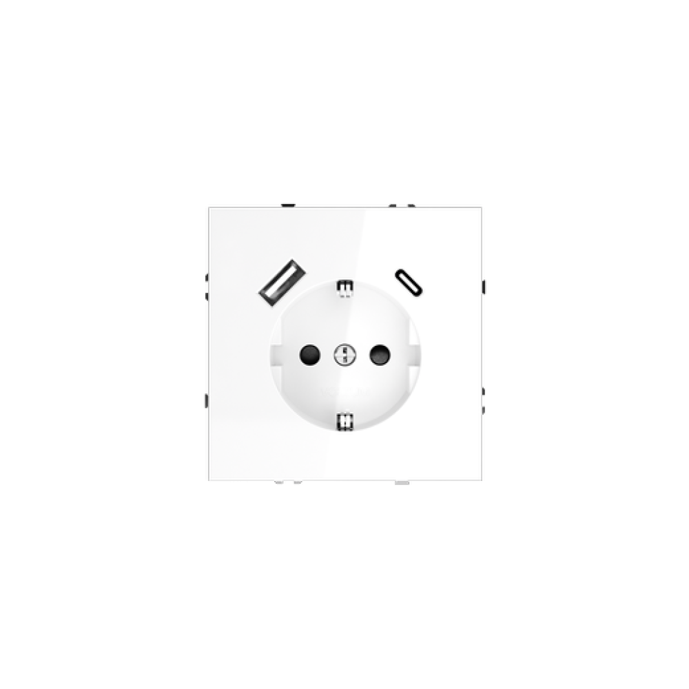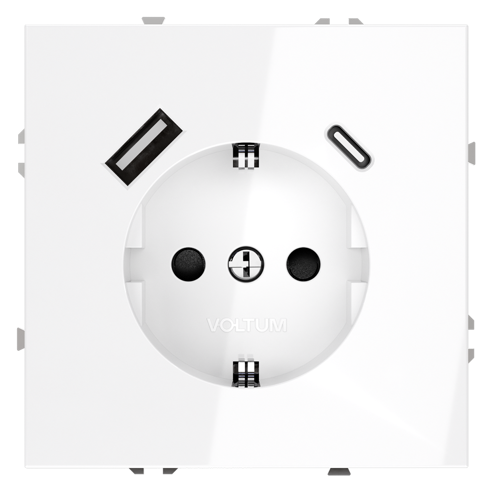 Конструктивные особенности. Мощность подключаемых приборов — до 20 Вт, сила тока — до 3,2 А. Этого достаточно для зарядки смартфонов, планшетов, ноутбуков, фотоаппаратов и других переносных устройств. USB типа C с технологией Quick Charge позволяет заряжать устройства в разы быстрее, чем обычные блоки питания. Разъем поддерживает одновременную зарядку нескольких гаджетов. Для монтажа USB-розетки рекомендован углубленный подрозетник.
