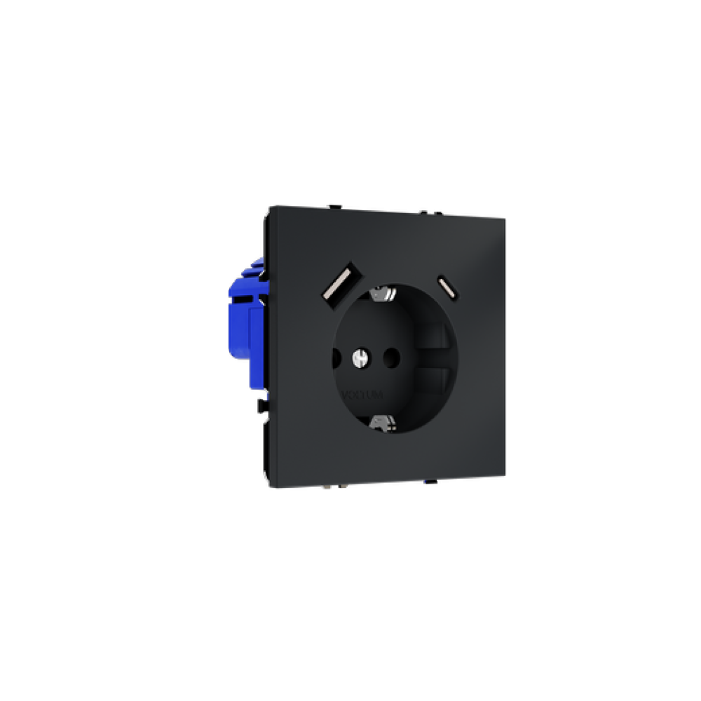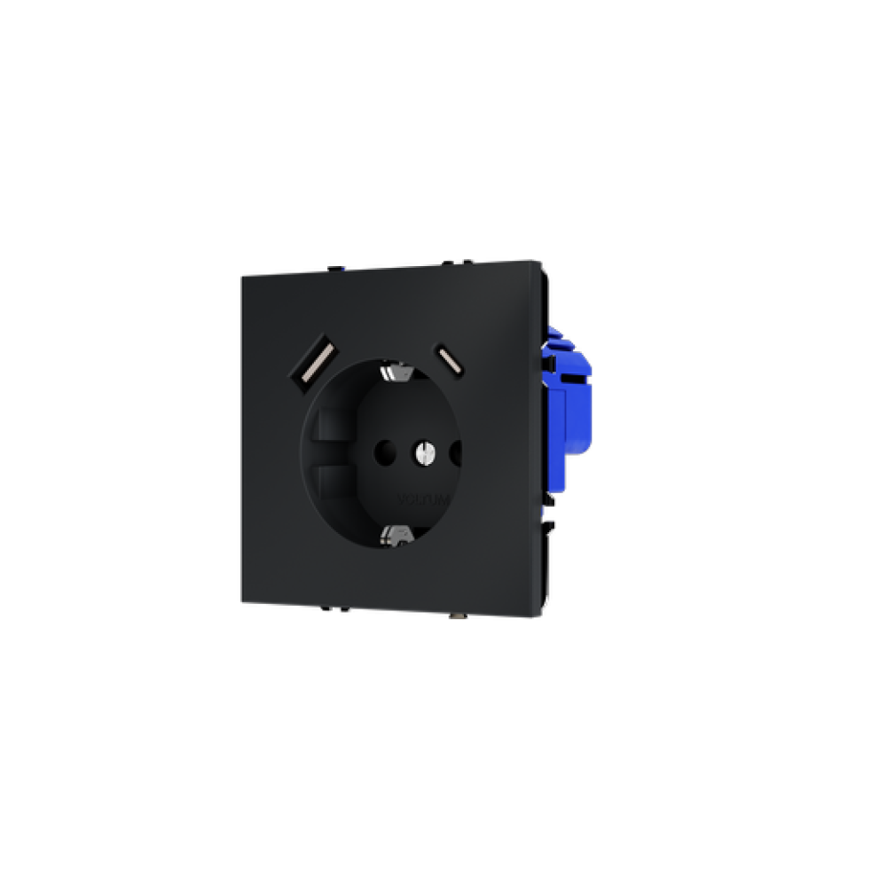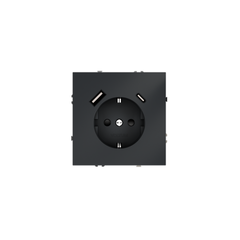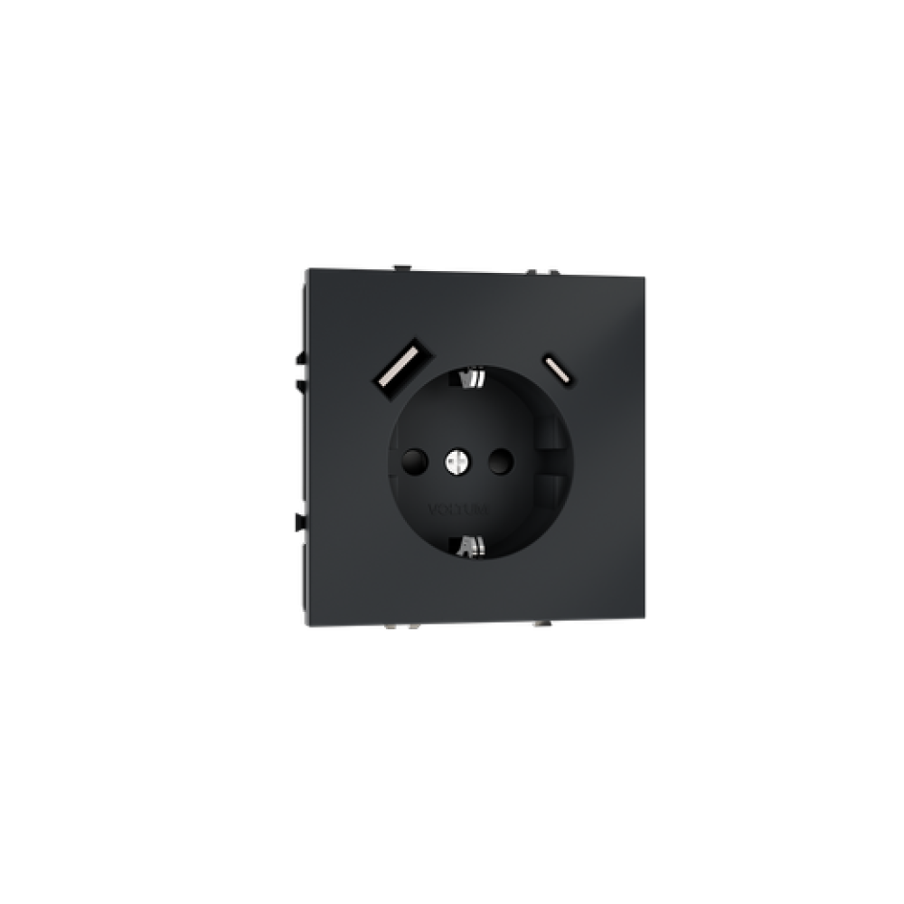 Розетка встраиваемая VOLTUM S70 с заземлением и защитными шторками, 16А, с USB, A+С, (графит)