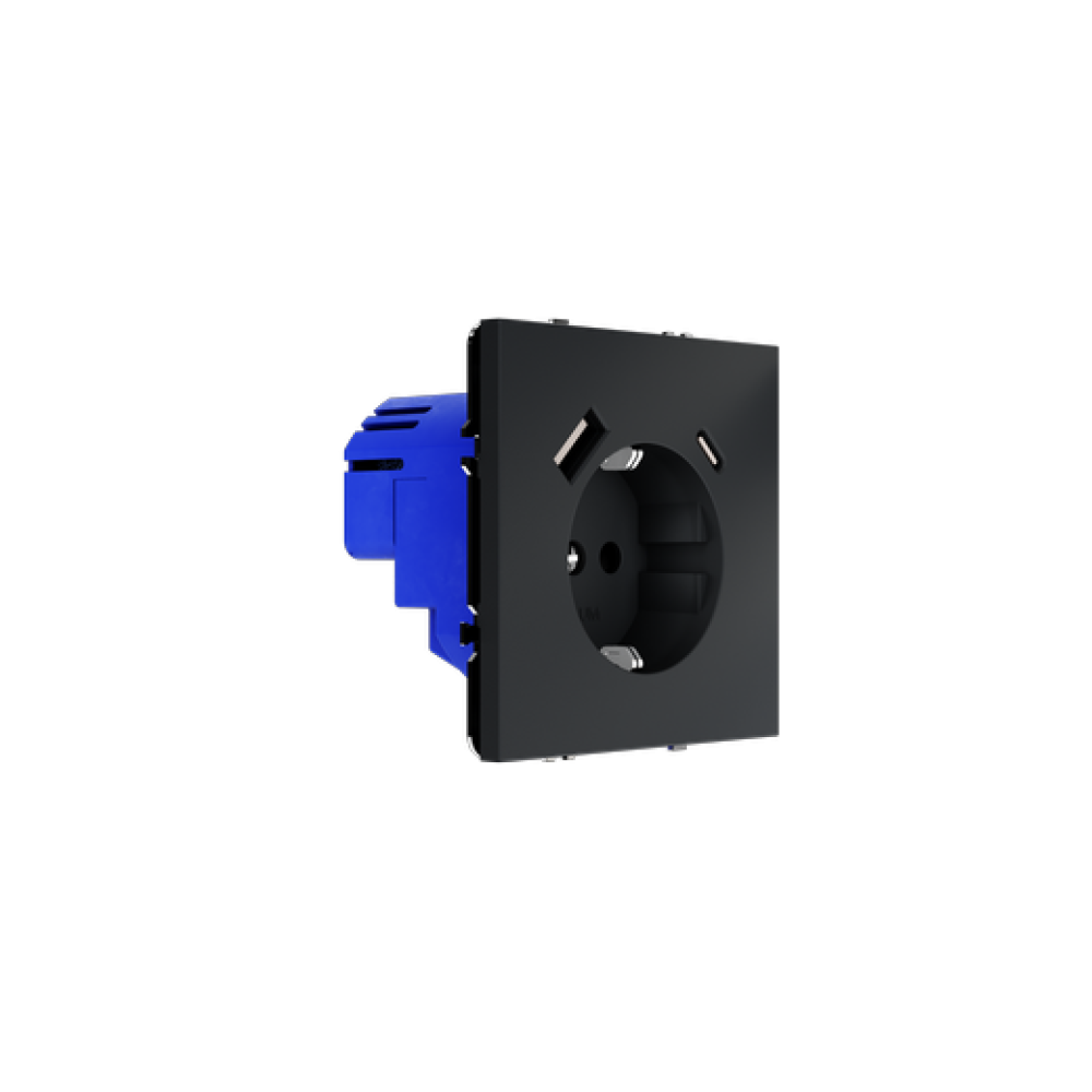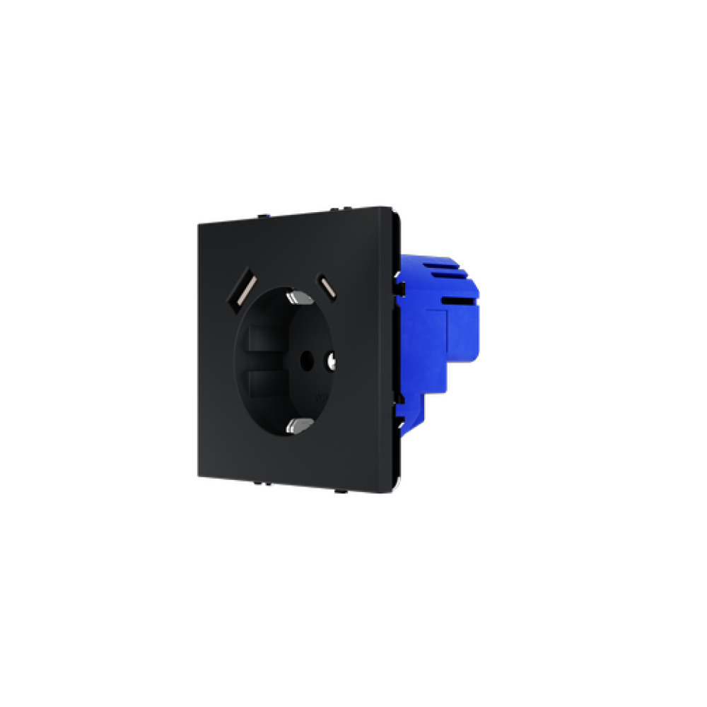 Корпус. Отличие от обычных розеток — наличие одного или нескольких разъемов типа USB-С или USB-A. Основной материал — негорючий поликарбонат.