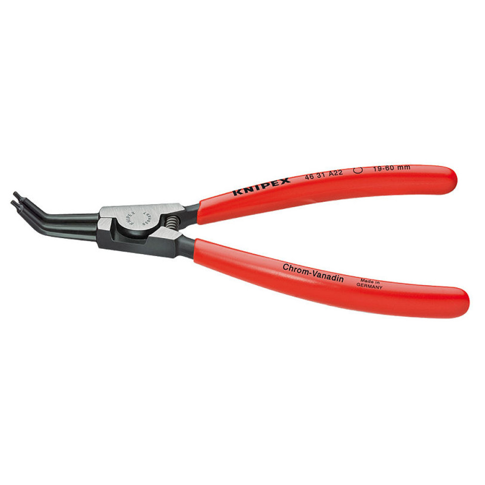 Щипцы для внешних стопорных колец, губки 45°, L-210 мм, Cr-V, чёрные, обливные рукоятки (KNIPEX)