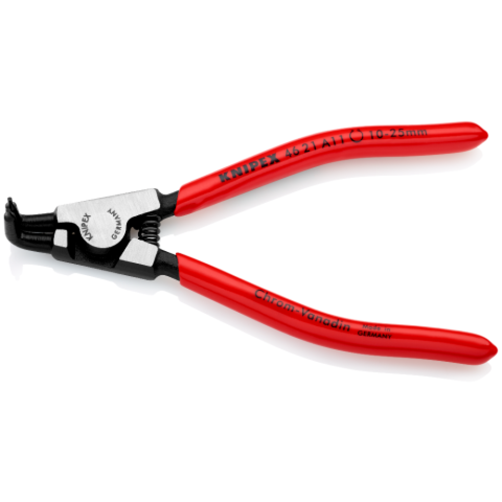 Щипцы для стопорных колец (внешних), 125 мм, KNIPEX 46 21 A11 KN-4621A11 Описание - С высокой нагрузочной способностью в условиях длительногоприменения: срок службы дольше до 10 раз по сравнению с обточенными наконечниками - Большие контактные поверхности на наконечниках:никакого перекоса колец, легкий монтаж - Винтовой шарнир: точный ход клещей без зазоров - Корпус клещей: хромованадиевая электросталь, кованая, закалённая в масле - Запрессованные концы: проволока из пружинной стали,тянутая Характеристики - 2 - DIN 5254 В; изогнутые под углом 90° наконечники -   10-25 мм - Длина 125 мм - Вес 85 г [ https://knipex-shop.ru/published/publicdata/WWWKNIPEXSHOPRU/attachments/SC/images/0_46_A.jpg ]