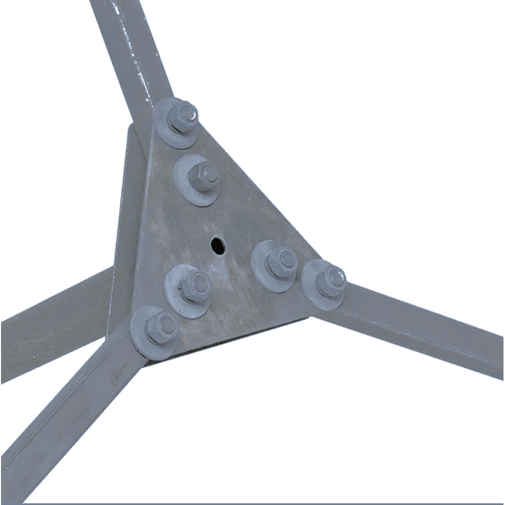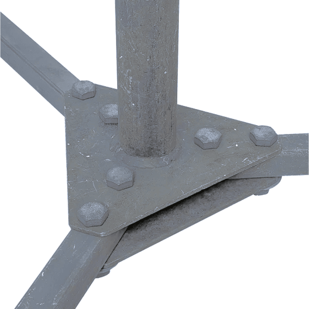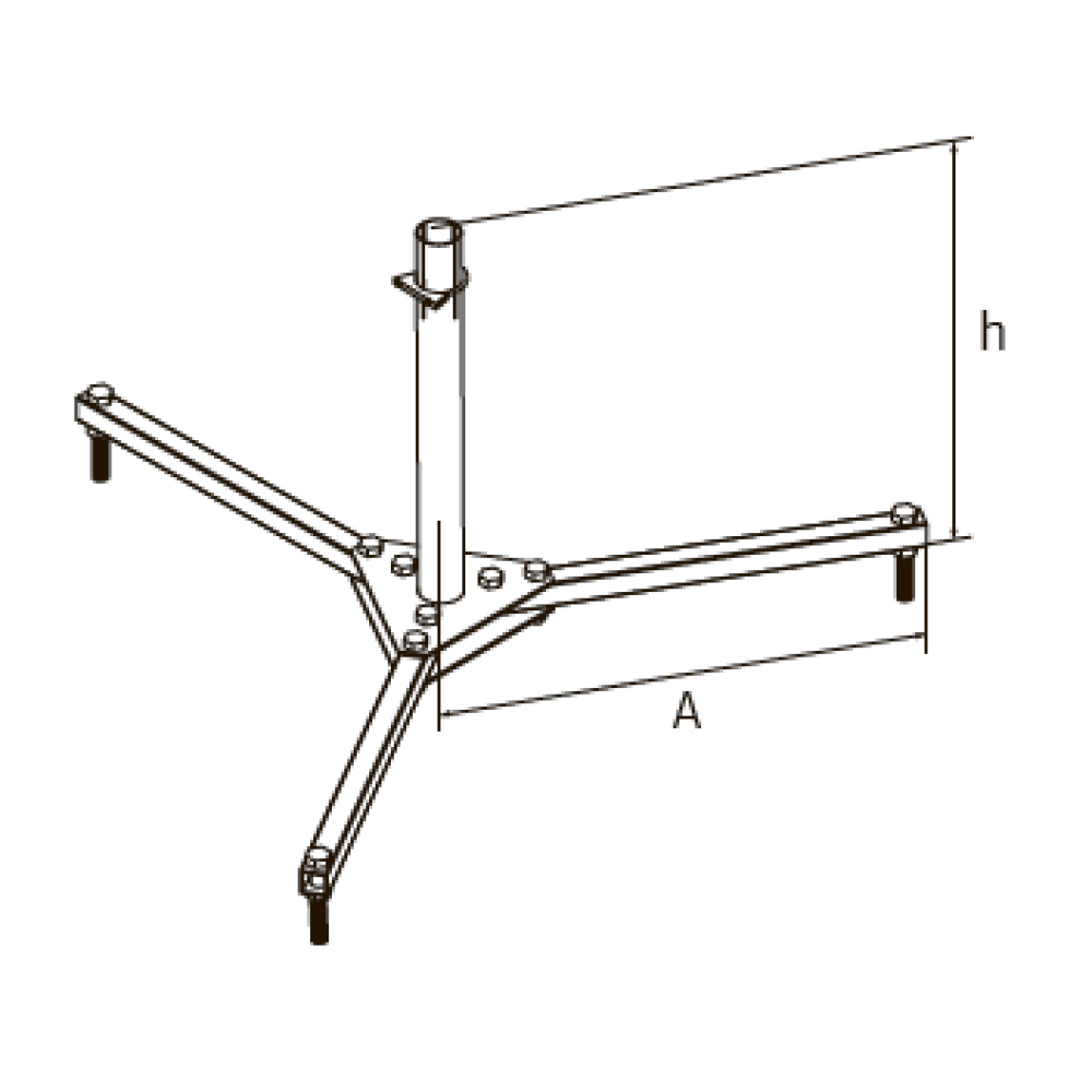 Тренога предназначена для установки молниеприемников высотой от 5 до 7 метров. Она используется с бетонными основаниями (арт. 02002/03003 – 3 шт).