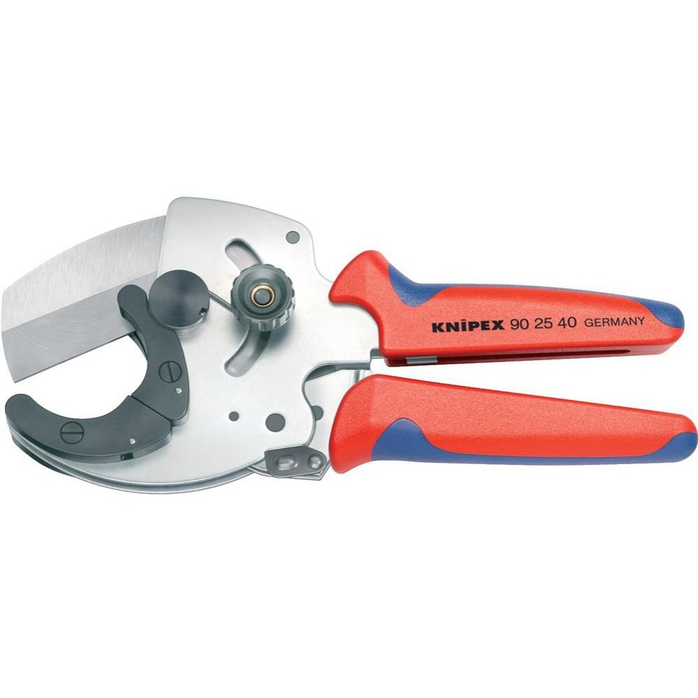 Описание - Для резания толстостенных пластмассовых и многослойных труб Ø 26,0 -40,0 мм - Режет трубы с применением принципа трещоточного ключа, за несколько рабочих ходов - С подвижными опорными губками для правильной фиксации трубы для ее перпендикулярного резания - Корпус инструмента: хромованадиевая электросталь - Нож: специальная инструментальная сталь [ https://mti.by/catalog/dopolnitelnyy-instrument-knipex-/zapasnoe-lezvie-dlya-truboreza-nozhnits-kn-902540-knipex/ ] , закалённая в масле, сменный Характеристики - Параметры режима резки Ø 26 - 40 мм - Оцинкованный - Двухкомпонентные чехлы - Длина резака 40 мм - Длина 210 мм - Вес 500 г Запасные части - Сменный нож 90 29 40