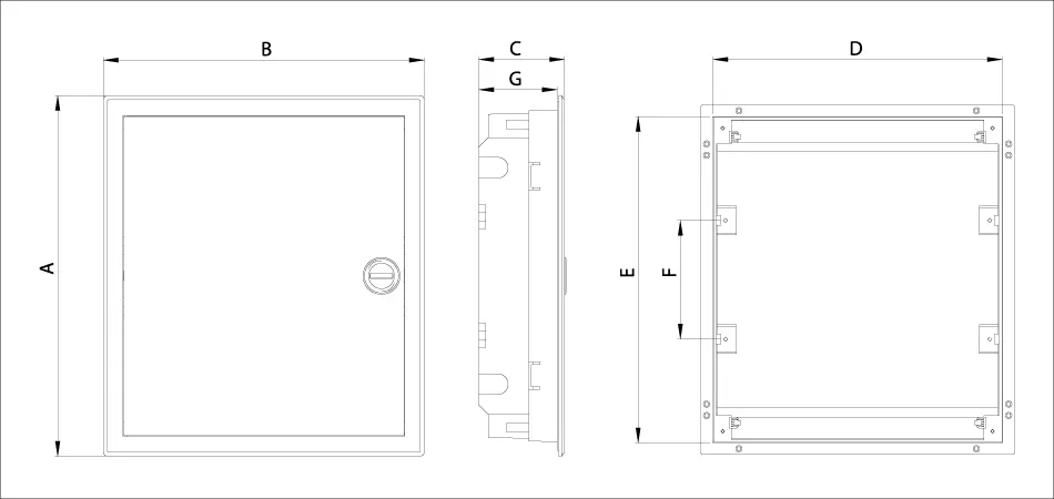 - Прозрачная или полупрозрачная дверца позволяет контролировать состояние установленных устройств без необходимости открывать щит.